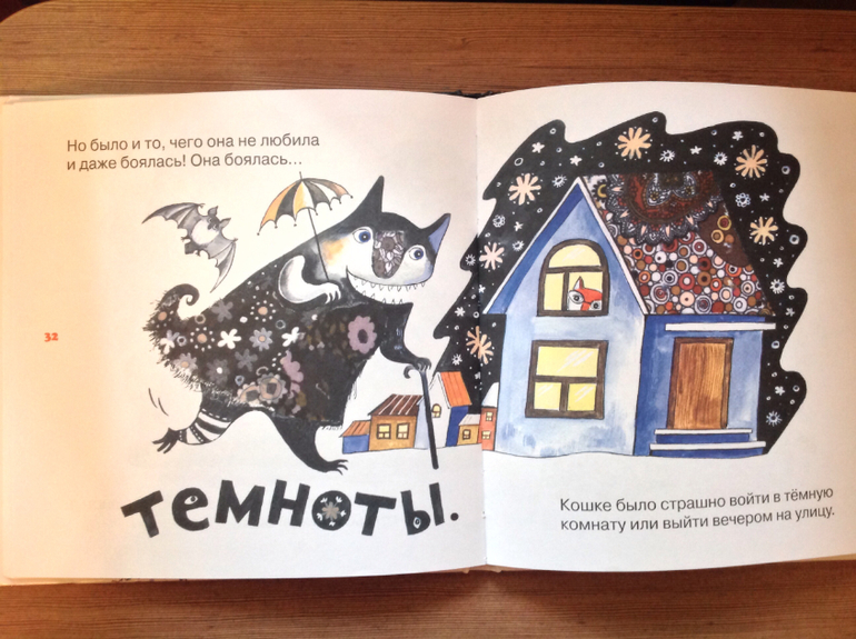 Кошку, которая боялась темноты схватила из за легко узнаваемых иллюстраций Дарьи Герасимовой, которые многим известны по книге Азбука превращений.