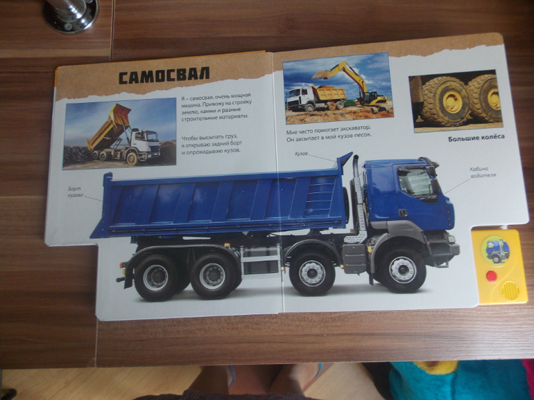 Прекрасная обучающая книга «Про мощный самосвал и не только» для детей от 2 до 5 лет, в тердом переплете со звуковым модулем. Машины в увлекательной форме рассказывают о себе при перелистывании страничек. Каждому соответствует свой характерный голос. Книга озвучена профессиональными актерами. Замечательный подарок юному читателю. Размеры ок. 21,5х24,5 см. 16 страниц.