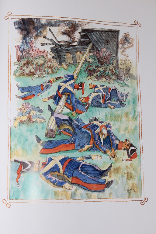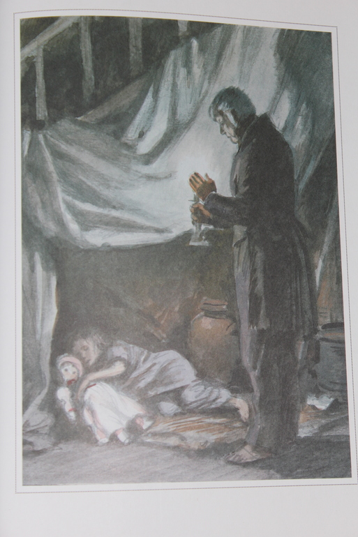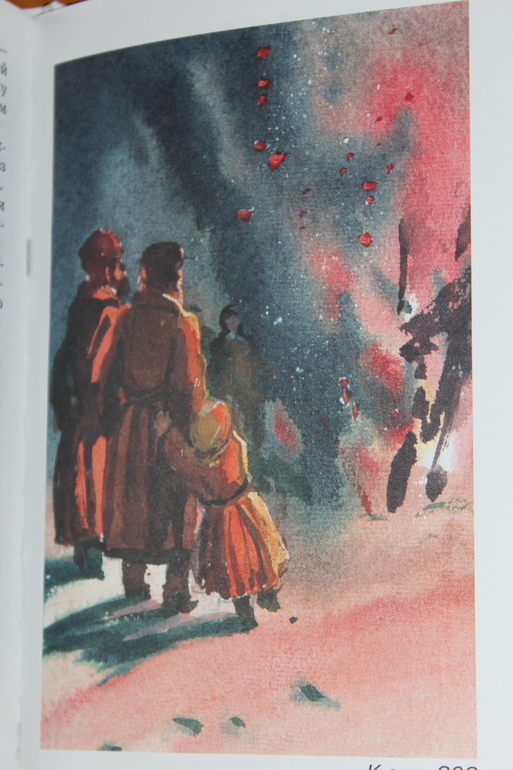 Книжечка бюджетного варианта. Белый тонкий офест, немного просвечивает. Иллюстрации Дугина. Их всего 8 цветных. Они напечатаны на плотном офесте, но очень отстают от содержания. Например, на 65 странице напечатана иллюстрация к 94 странице, а на 97 к 145. Хорошо, что под иллюстрацией написано куда она относится)