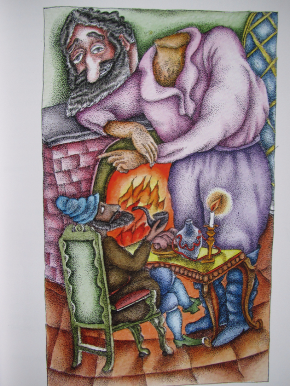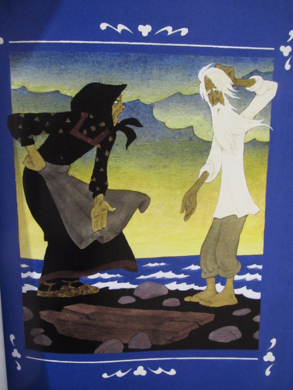 Это не опечатки! Сказка написана Б.Шергиным, в книге она приведена в оригинале, мы видим диалектную лексику поморов.С детками постарше можно составить словарик поморских диалектизмов. С еще более старшими можно писать сочинения: Борис Викторович Шергин — «волшебник русской речи», «поэтическая душа Севера».ПРАВИЛА ПОМОРСКОГО ЯЗЫКА ПомОрьска говОря — «цёкающий» язык: звук -ч- в нём традиционно произносится как мягкое -ць-: (Улиця, кОцька, дОцька, цепАхи, рУцёй)Нет привычных гласных в окончаниях глаголов: работам, гулям. Замена [’a] на [’э]: литературная норма [’a] в говоре [’э] : гленько (гляди-ка). Замена мягких [ч’], [щ’] на твердые [шш]: ещё – ишшо. Несовпадение литературной нормы в окончании существительного и диалектного варианта: по дороги. Различия в роде: Кошка поймала мыша (м.р.). Произношение [с] на месте ст в конце слов: хвос (хвост). Отсутствие [j] в окончаниях полных прилагательных: круглы. (Ср. круглый) Лексические диалектизмы (слова, которых нет в литературном языке): Шиписьник (шиповник).