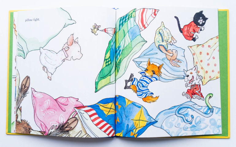 А, кстати. Вчера Алиска предложила мне устроить подушечный бой. Во всём виновата свинка и вот этот разворот: