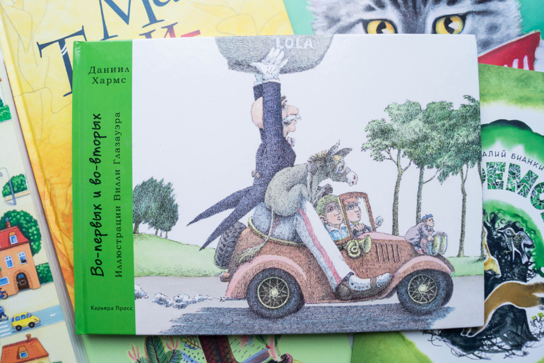 Книга прекрасна от начала до конца. Наши с Алиской и Колей ощущения от неё просто резонируют. Однозначно это открытие месяца. И странно, что я до сих пор не встречала отзывов на неё. Отдельным открытием для меня был Хармс в прозе. Я вообще до недавнего времени была слабо знакома с его творчеством. Да-да, мне стыдно, и не надо тычить пальцами. Вот только месяц назад созрела таки на его стихотворный сборник с Олейниковым. Довольна, но хотелось бы других иллюстраций. Не знаю, каких. Других. Стихи мне показались не по возрасту, отложили. А вот рассказ про Петьку, осла и разнокалиберных людей отлично Алиске подошёл. И папе понравился, часто читали вместе. Вообще, замечаю, что Хармс чудесно читается папами.