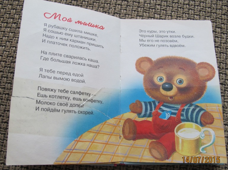Самой первой из этих книжечек, где-то в 2010 году у нас появилась книжечка Мой мишка. Залюбленная, зачитанная моими девчонками.