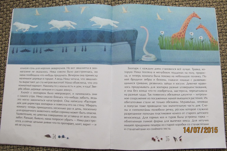Е. Зверева. Волшебный зоопарк. Эту книжечку Соня нежно любит. История о том, как девочке прислали посылку с маленькими живыми зверями из зоопарка. И она учится за ними ухаживать, узнает их привычки, устраивает их у себя в квартире. Очень интересная и волшебная история. Иллюстрации нежные, успокаивающие.)))