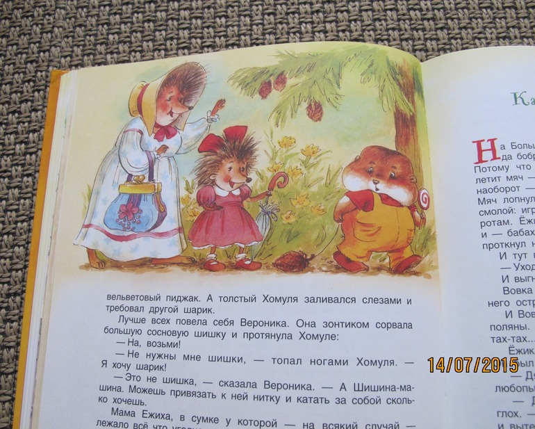Из книги А.Усачёва Большая книга о... читали истории про ёжиков. Собачку Соню мелкая категорически пролистала, а вот про ёжиков слушала с интересом. Понравились и иллюстрации, и сами истории. Причём когда книга у нас появилась - средней было около 4-х, эти сказки почему-то у нас не пошли, а сейчас понравились обеим. Загадка.