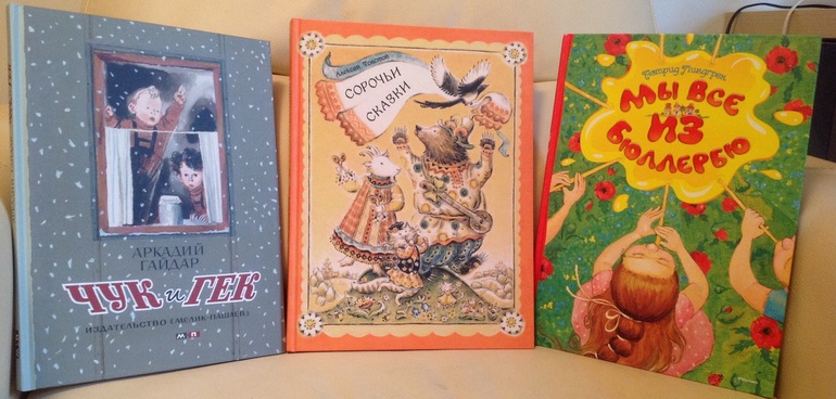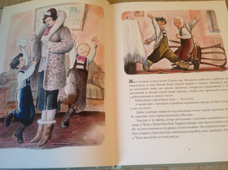 "Чук и Гек" Аркадия Гайдара. Мне здесь не нравятся рисунки Слепкова, но в целом издание очень хорошее, так что не буду навязывать ребенку свой вкус