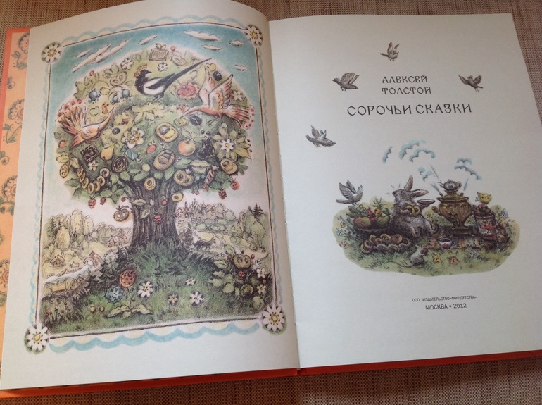 "Сорочьи сказки" Алексея Толстого несколько лет пролежали в корзине, в итоге купила на выставке. Удивительно, что небольшой тираж 2012 года до сих пор не раскуплен, книга очень красивая, иллюстрации необыкновенные. Сказки очень интересные и самобытные.