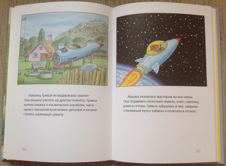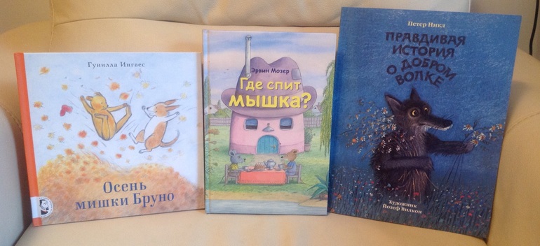 Под впечатлением от "Шустрика и Тишки" Эрвина Мозера заказала книгу "Где спит мышка?". Истории в ней немного длиннее и сложнее(в первой совсем короткие), некоторые с элементами фантастики. Дочке пока "Шустрик и Тишка" ближе и понятнее, "Где спит мышка?" на втором месте, читаем выборочно.