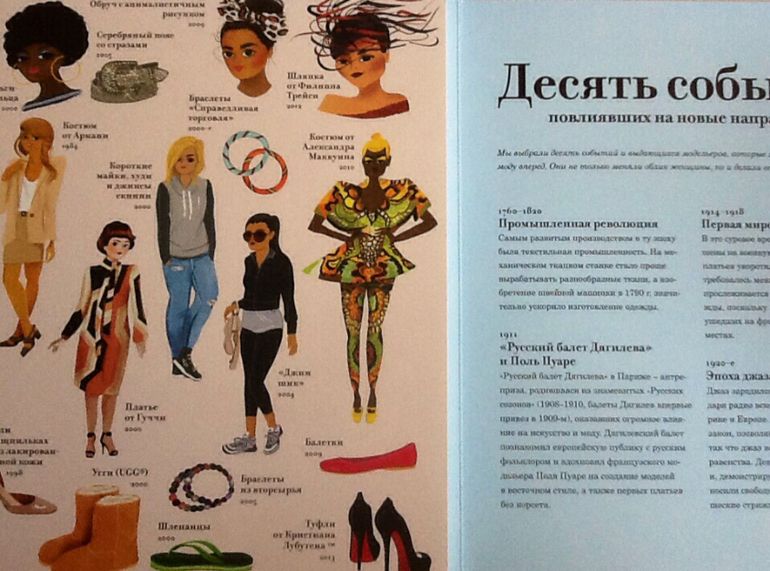 В конце книги есть разворот, в котором описываются события, повлиявшие на новые направления в моде.