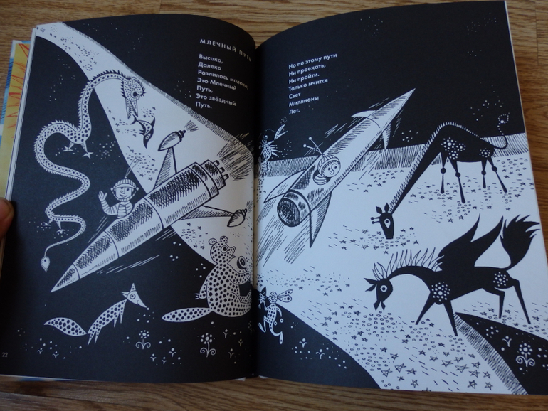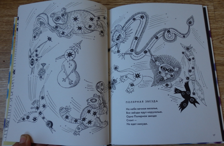 Звёздная карусель Сапгира (ISBN: 978-5-9268-1612-6) года полтора у нас лежала на верхней полке как "не доросли", а тут мы что-то решили её достать, а там ...там всё такое знакомое! Такое родное! Все восторги, высказанные в ДК по поводу этого издания, у нас помножились на только что изученную тему.