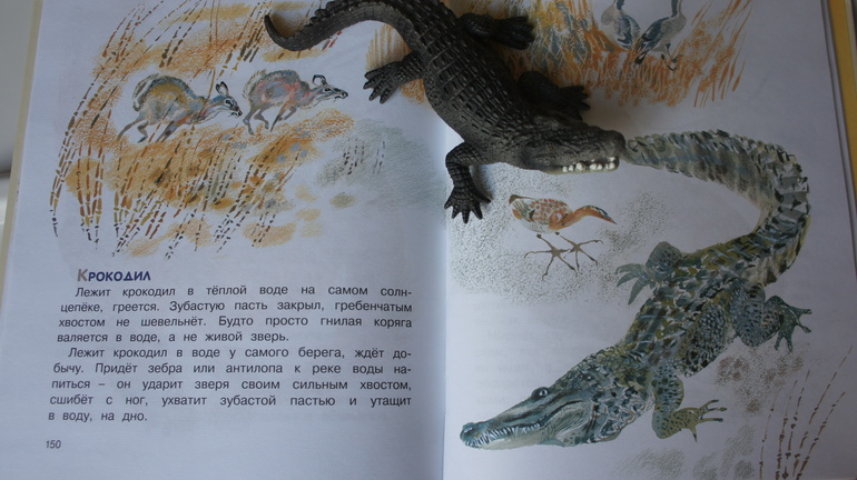 из всех наших зверушек Ева любит больше всего крокодилов в любых проявлениях, кита, бегемота, пингвина.