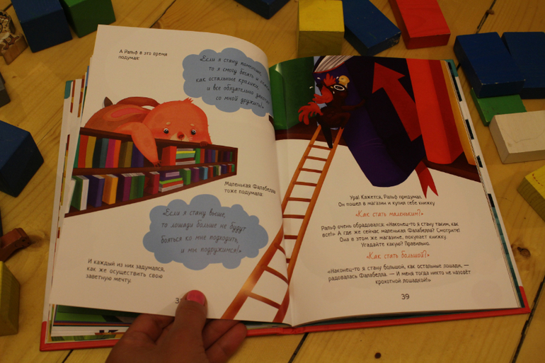 «Ральф и Фалабелла» - история принятия друг друга такими как есть. Дочке особенно дорого, что главная героиня этой сказки - самая маленькая в мире лошадка, она ими бредит уже полгода, да и еще и имя у этой лошадки такое романтическое - Фалабелла! Между прочим, самый большой в мире кролик Ральф ей в харизме ничуть не уступают, они явно стоят друг друга, а друзьями стали не случайно. С этой сказкой хорошо говорить о наших особенностях, которые кому-то могут казаться смешными, а для кого становятся в нас самым дорогим, тем, что отличает нас от других.