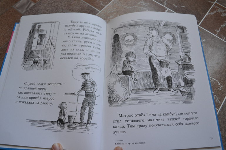 Книги не из дешёвых, и два месяца назад я была очень расстроена, когда купленные мной две книги не заинтересовали сына.Однако прошло время, и теперь мы читаем их каждый день, а то и не по одному разу!Истории про отважного мальчишку-моряка Тима так нравятся Диме (да и мне, честно говоря), что я уже решила обязательно собрать всю серию (что делаю крайне редко!).