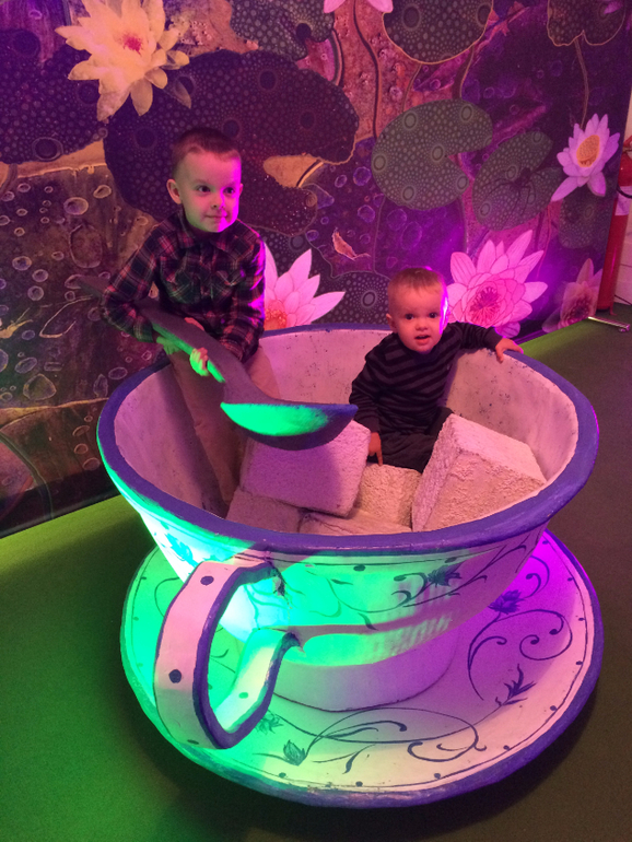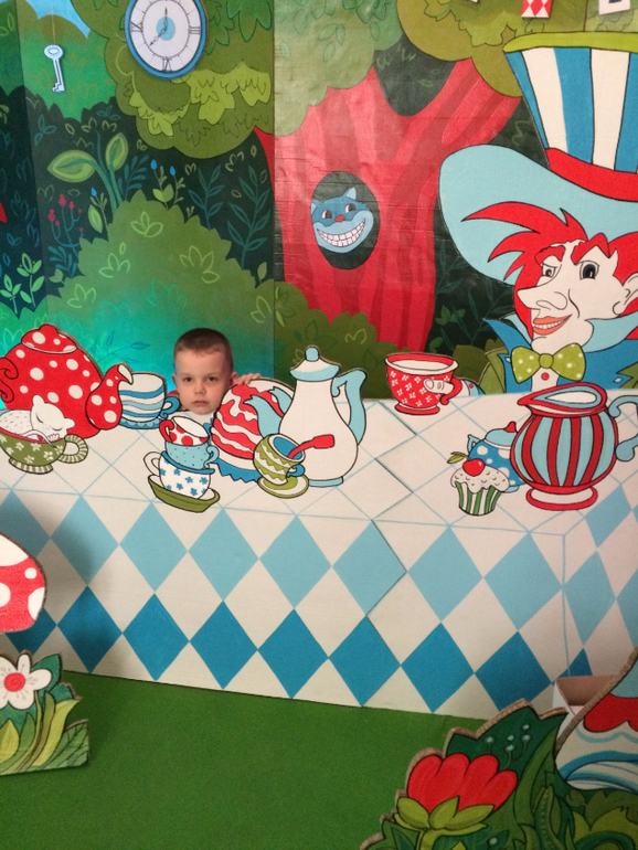 На кануне праздника в честь 150-летия выхода в свет книги "Алиса в стане чудес" я узнала об интерактивной выставке посвященной этой книге и очень мне захотелось ее с Ваней посетить. Поэтому мы принялись читать книгу "Алиса в стране чудес для малышей". Прочитали, и совсем у меня остался какой-то непонятный осадок: в тексте нет ничего за что я так сильно в свое время полюбила эту книгу, единственное очень понравились иллюстрации, именно то, что нужно. Утешала себя мыслью, что для малышей то большего может и не надо. Ване книга очень понравилась. После того как прочли сокращенную версию, я тут же рассказала Ване про наличие полной версии и он сам изъявил желание прочитать полный вариант. Прочитали и остались оба очень довольными: я так как давно не читала Алису, а Ваня потому что со всеми событиями он был знаком, ему нравилось опережать повествование: я про что-то читала, а он старался меня опередить и рассказать, что будет дальше. Еще ему очень нравилось параллельно рассматривать картинки и всевозможные вставки в книге "Алиса в стране чудес" от издательства Лабиринт. В выходные мы отправились на выставку. Лично мои впечатления: выставка ни о чем. То, что это интерактивная выставка по книге, это очень громко сказано! Я ждала конечно совсем не этого. Но дети были в восторге, наигрались во все игрушки, повеселились, Артем был в восторге от лошадок, которые там были представлены в большом количестве, и от Королевы, которая ходила по залам и повторяла: "Отрубить всем голову") а Артем водил меня за ней по пятам и любовался. После еще долго просил показать ему тетю Калалеву на телефоне. Ваня узнавал всех героев, что-то вспоминал из книги, если я спрашивала, но потом увлекся игрушками из Икеи и про Алису мы больше не вспоминали.