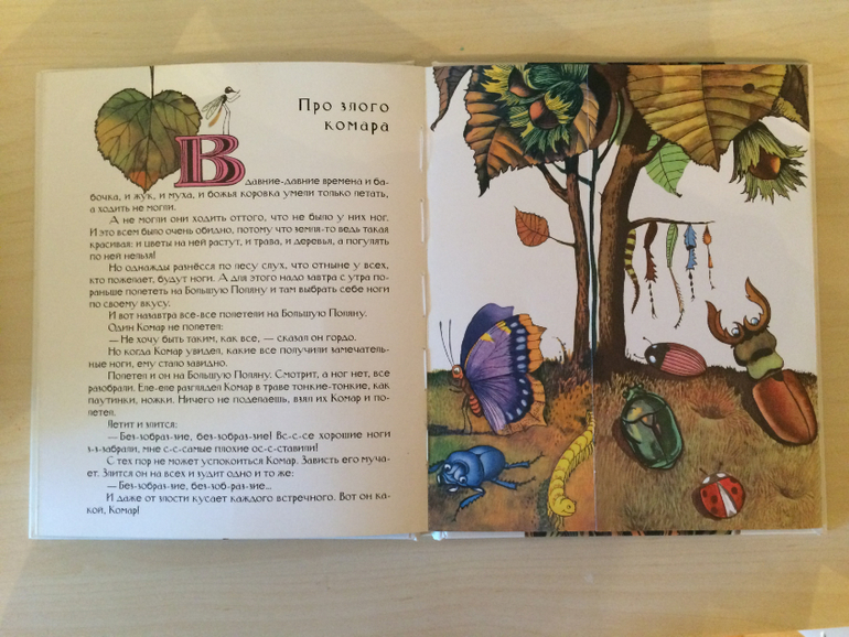 Совсем недавно, с момента первого прочтения прошло наверное не меньше полугода, Ваня попросил меня почитать ему книгу про комара, которому достались самые плохие ножки. А я понимаю, что мне знакомо то, что он говорит, а вспомнить, что это за книга не могу) В итоге пошли с ним вместе пересматривать наш книжный шкаф в поисках таинственной книги. Ваня нашел ее сразу, я тут же вспомнила рассказы и мы прочитали ее еще раз с большим удовольствием. Думаю, сделаем это еще не один раз.