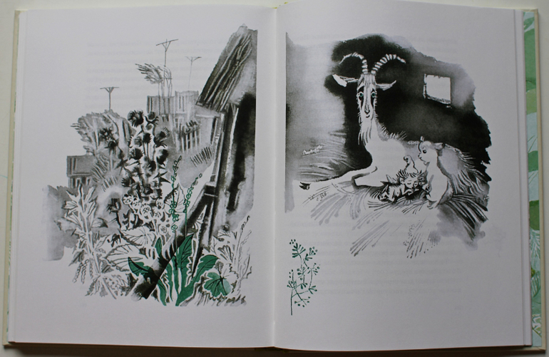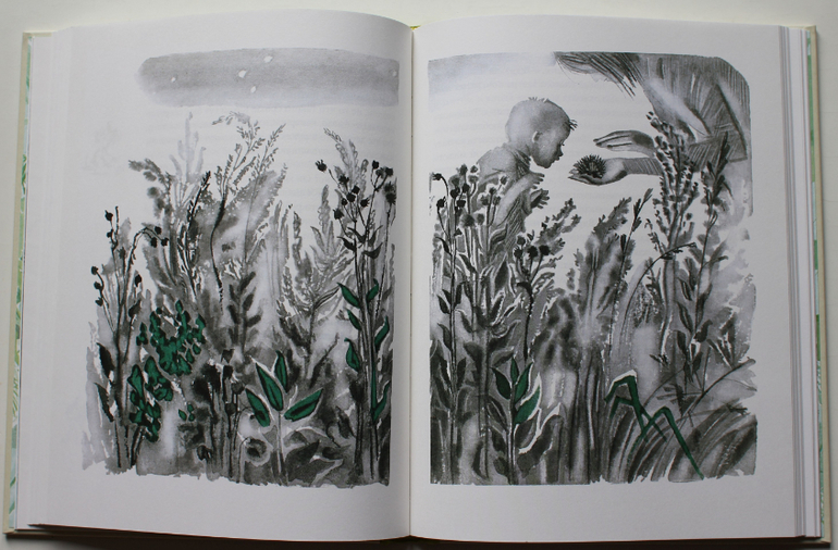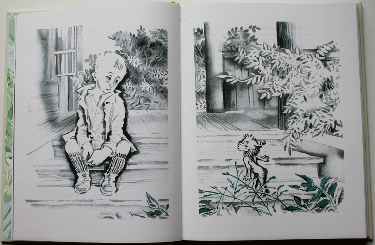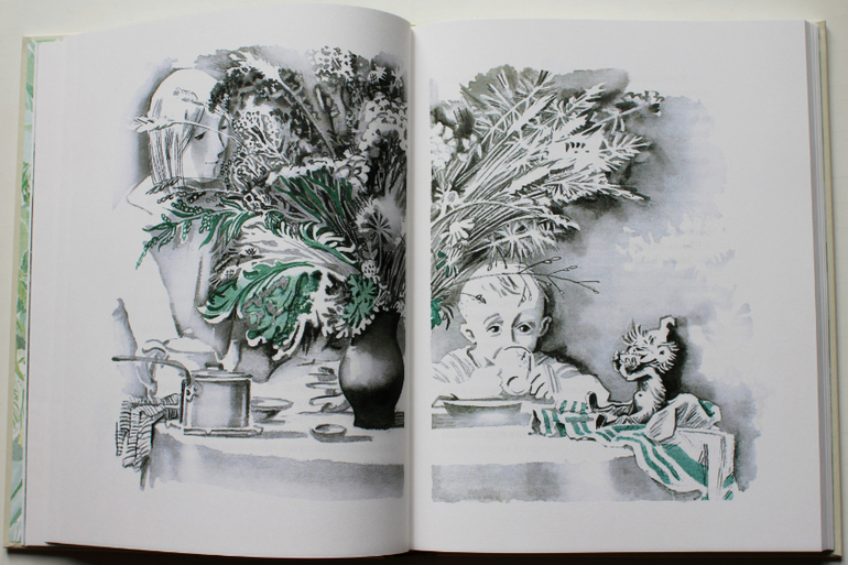 Не могу представить себе эту историю без иллюстраций Ники Гольц, настолько удивительно гармонично они вплелись в текст и стали с ним единым целым. Совершенно невероятные иллюстрации, завораживающие как только открываешь книгу, прямо с форзаца. Они дышат, они живут, и вместе с ними с первых страниц оживают детские воспоминания, ощущения чего-то близкого и родного.