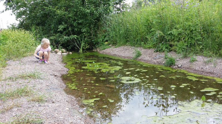 У нас на даче недалеко от участка есть неглубокий искусственный прудик, созданный руками соседей. Он кишмя кишит водомерками, жуками-плавунцами, разными червячками, лягушками и прочей живностью.