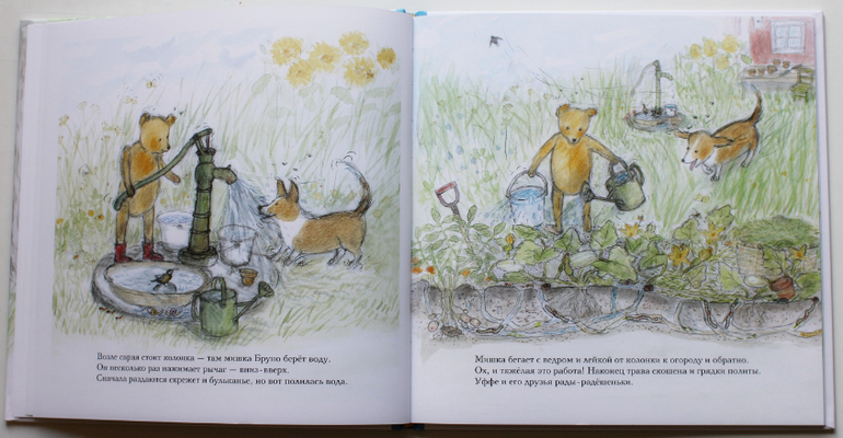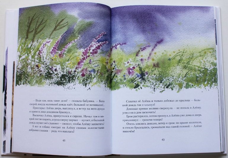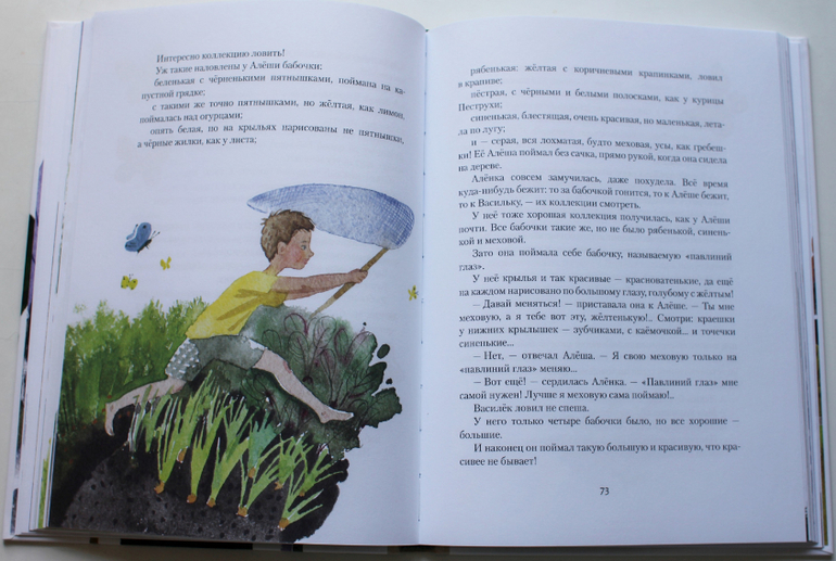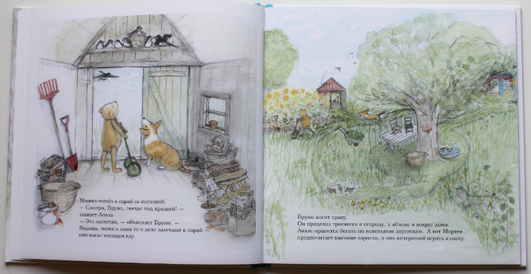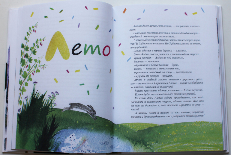 Очень вовремя вышла книга у Речи, Ксюше она оказалась просто идеально по возрасту, что не удивительно, ведь ей почти пять лет, и Алёше тоже пять. Немножко даже удивила и порадовала дочкина реакция, Ксюша сказала, что это лучшая книжка, прочитанная за последнее время. А ведь я хотела ограничится только "Весной" и "Летом", и вернуться к книге уже осенью, но ничего не получилось, прочитали целиком меньше чем за неделю, и спустя пару недель еще раз перечитывали про лето.