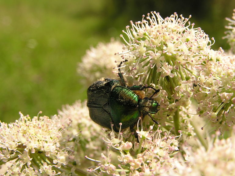 И купырь повстречался, но бронзовка заинтересовала дочку гораздо больше