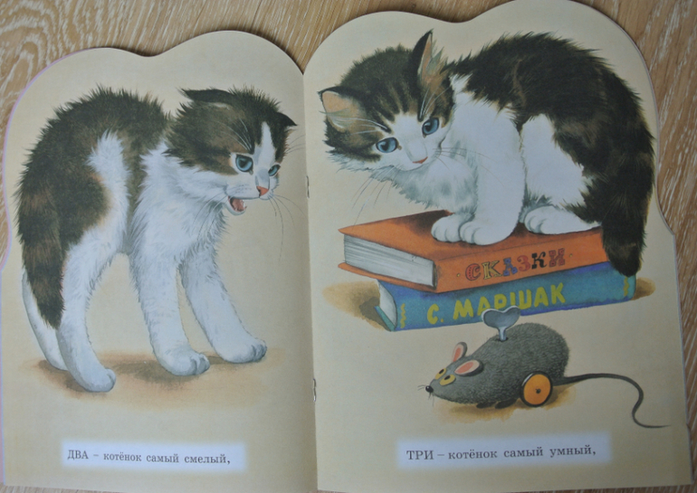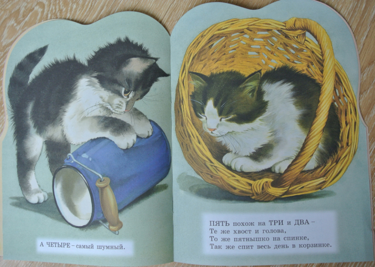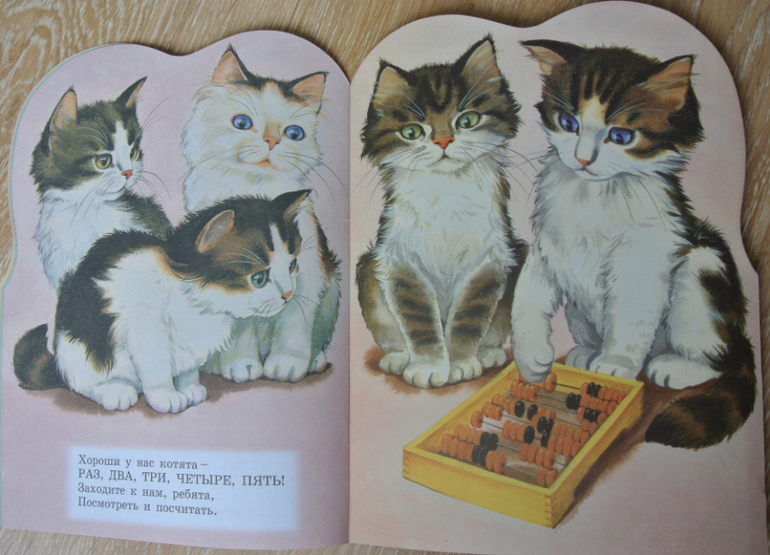 . Хотя справедливости ради, считалка - на то она и считалка, чтобы "раз, два, три, четыре, пять. Вышел зайчик погулять". и остальные считалки тоже.Здесь мы с пираткой будем считать не зайчиков, а котят. Шкодных, пушистых, трехшерстных (в моем детском поверье, значит, - счастливых), мимимишных котят:)))). Она уже умилительно говорит "Кись" или "киси", поэтому книжка актуальна.