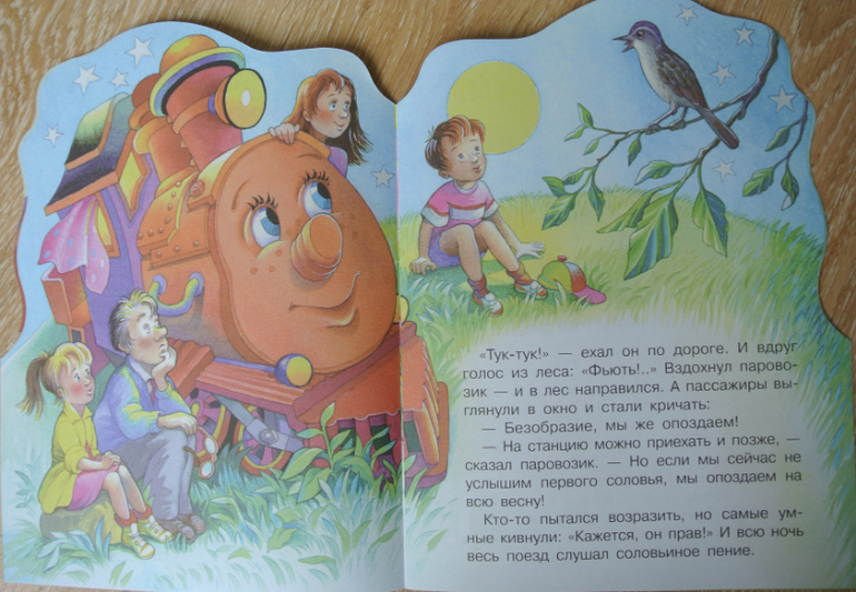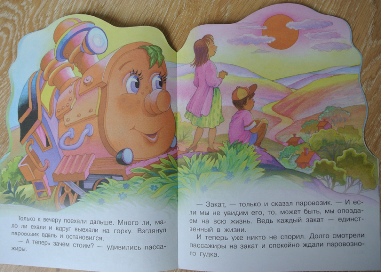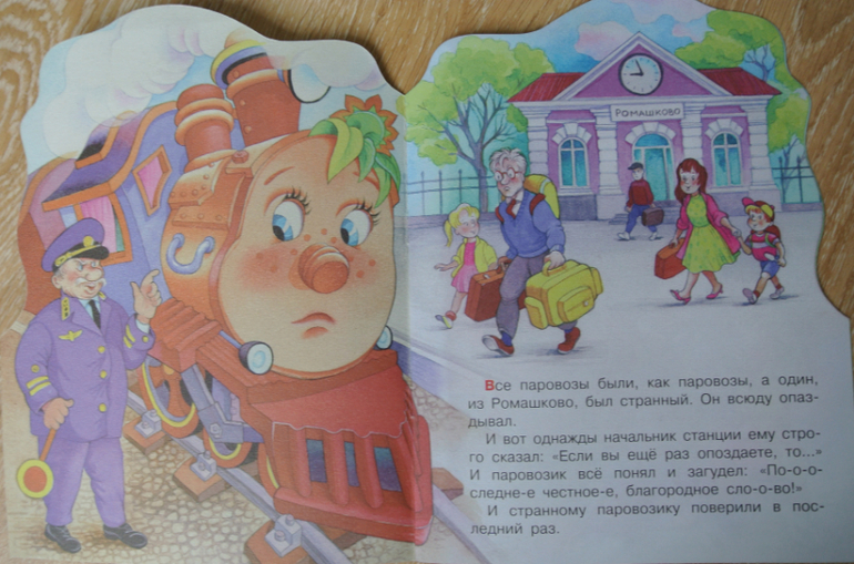 Когда мальчики были маленькими, они так часто смотрели этот мультик. Отчасти потому, что старшего мы дома называем Ромашкой. И он особо проникался к этому паровозу с мест, схожих с его именем. А еще большая любовь к паровозам и поездам стала появляться (позже Паровозик Томас мне чуть ли не снился:)))И я совершила большую ошибку, купив Большую книгу сказок Цыферова. Из-за знакомого по мультику Паровозику из Ромашково. Но, увы и ах, книга эта мальчишками не читалась. Все чего-то ждала... Кроме Паровозика ничего не читали вроде... Простояла несколько лет и недавно переехала на пмж к другому читателю. Так, кстати, со всеми книгами из "Большой серии" получилось у нас :).