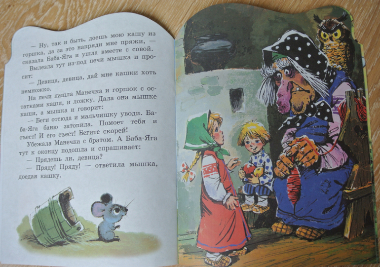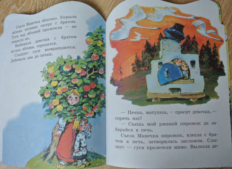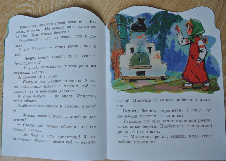 Книжки тонкие в прямом смысле этого слова. 8 страниц (в Гуси-лебеди побольше).