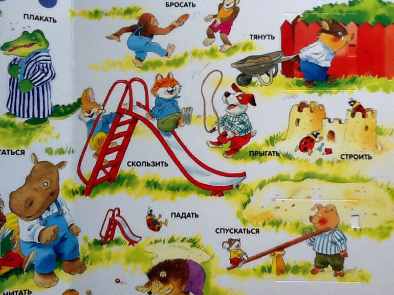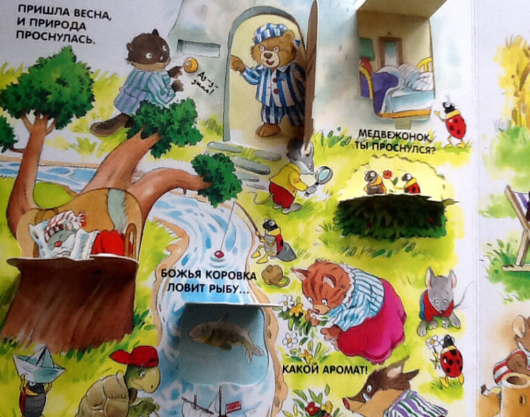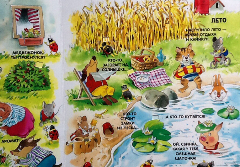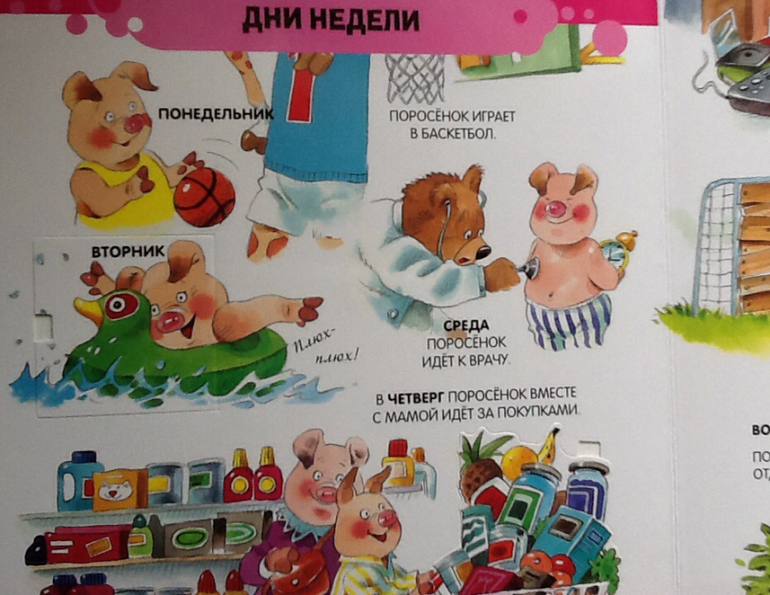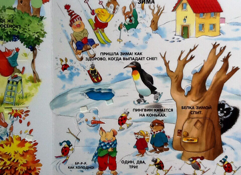 Больше всего нам нравятся развороты с временами года. В книжке так же есть развороты с месяцами и днями недели.