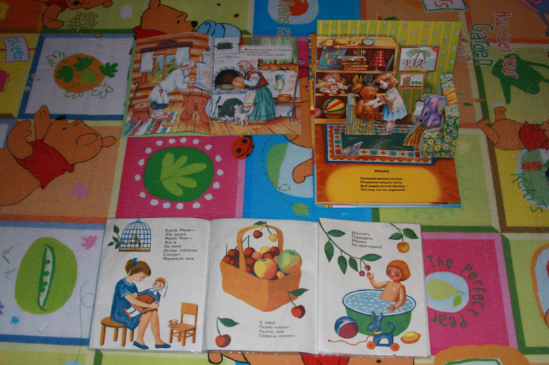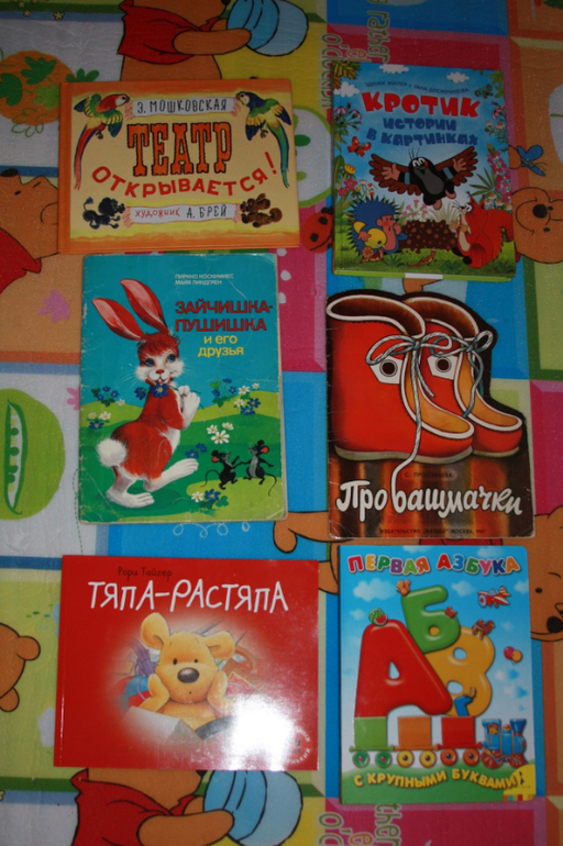 Был Тишка-плутишка - не пошел от слова совсем( Александра умиляется кошкам только на улице. В крайнем случае читает "Котик-коток" от Лабиринта (нет на фото, он у нас на работе живет) и все.