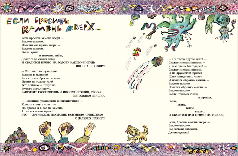 Вот, например, иллюстрации Олега Эстиса к сборнику стихов Андрея Усачева "Если бросить камень вверх".