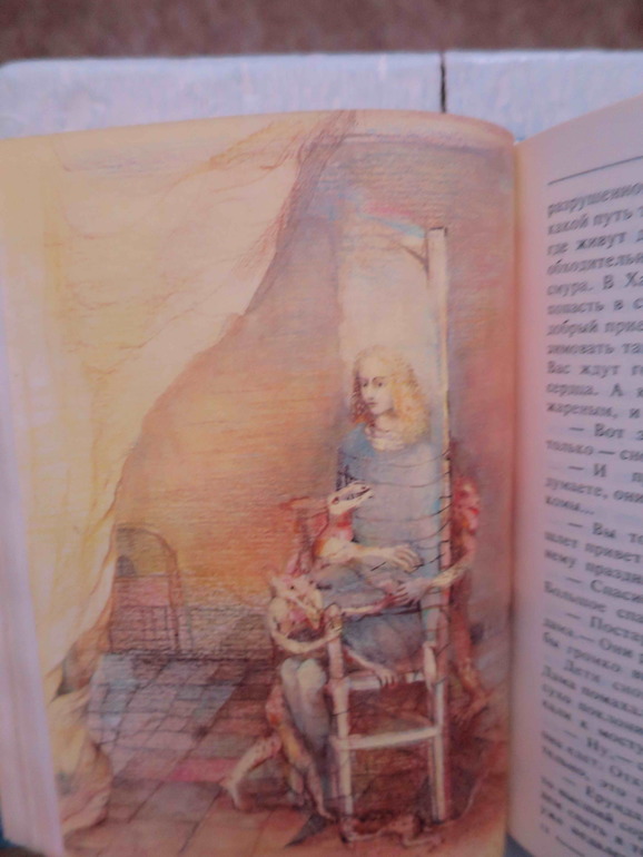 У меня была книга небольшого формата, все 7 частнй в одной. Иллюстраций там не было, только в начале каждой части. А потом уже купила книгу на английском с классическими черно-белыми картинками, хотя я бы хотела много цветных.