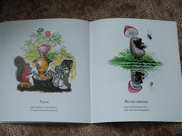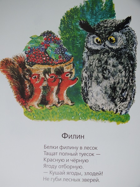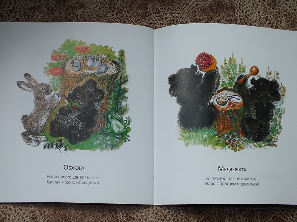 В книжечке есть ещё коротенькие стихотворения: "Самолет", "Качели", "Гости", "Лесное озеро", "Филин", "Трус", "Чья возьмет?", "Медвежья колыбельная", "Обжора", "Медвежата".