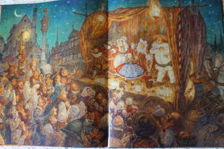 5. Красная шапочка. Очень интересная задумка при иллюстрировании) Бродячие артисты приехали в город, весело, задорно и не страшно)