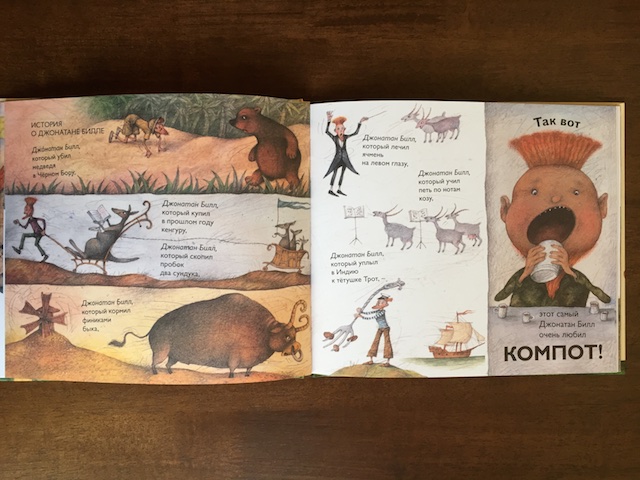 Но неожиданно для меня книжка стала хитом на целую неделю. Особенно Настя понравилось про слоненка, бычка и Джонни на пони.