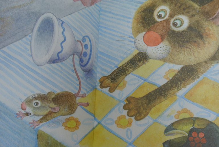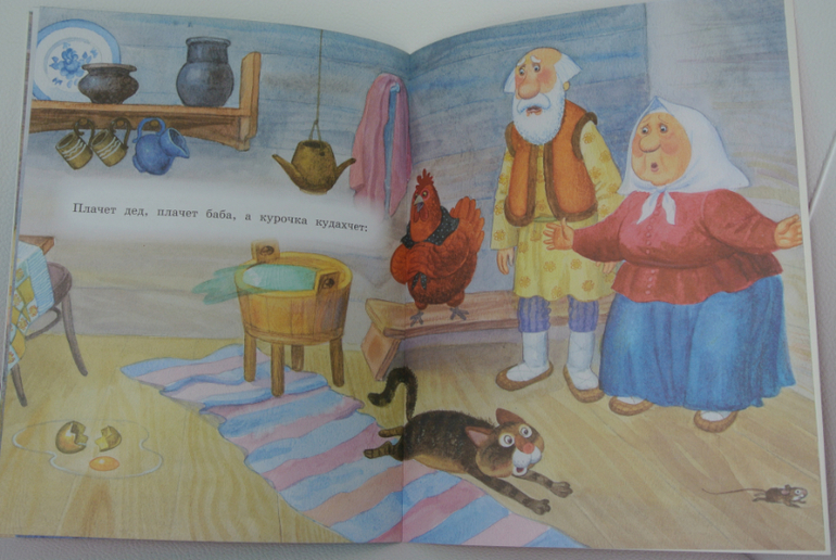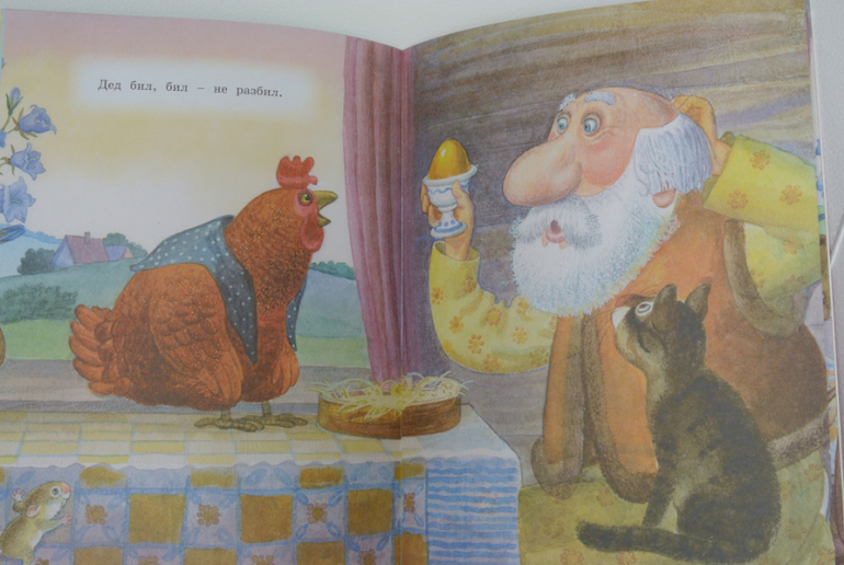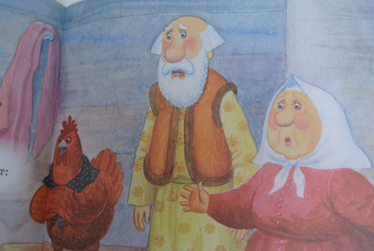 Художник в Курочке Рябе понравился чуть больше, но в обеих книжках видны и карандашные штрихи, и нежность акварели, и эмоции на лицах/мордах.