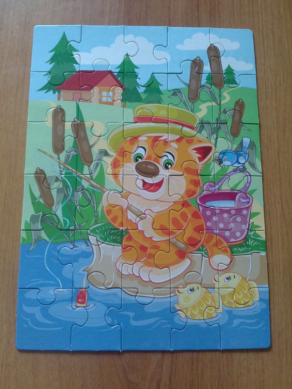 Очень довольны покупкой))Детали пазла сделаны из прочного картона,хорошо друг к другу подходят.Картинка получилась большая и яркая.Собирать одно удовольствие!