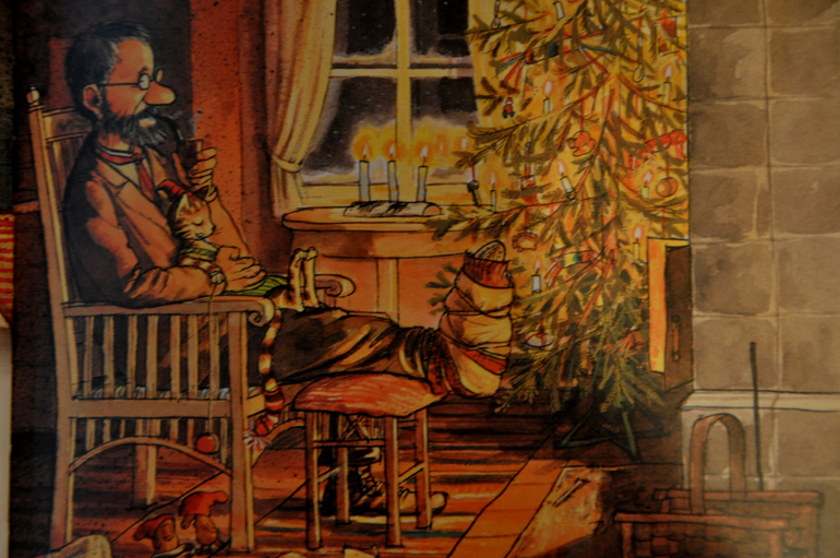 Пока Петсон создает ствол будущей елки (привезти они ее не могут из-за того, что Петсон ногу повредил), "доктор" прослушивает стетоскопом больную ступню). Ну и свечу уж сверху ступни, удобно ведь и видно все)