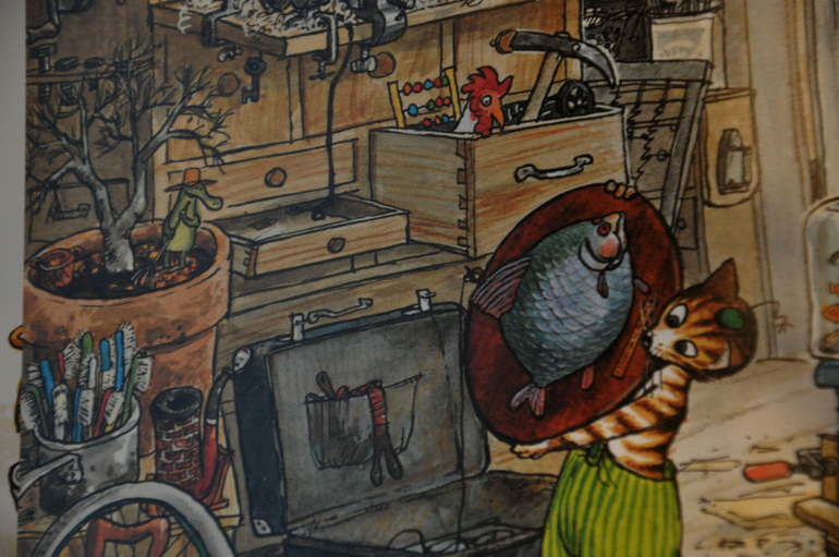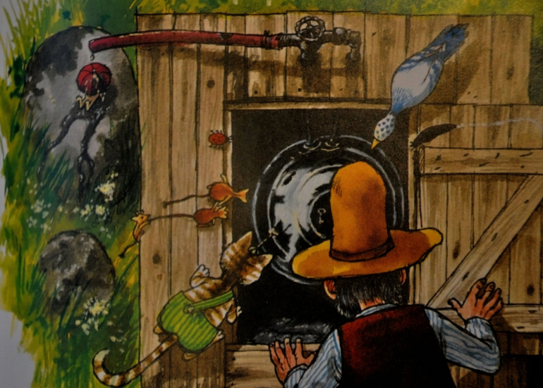 Петсон и Финдус собрались на рыбалку. Обращаем внимание на правый нижний угол, там пашут мюклы) Смотрите фото ниже, там крупнее.