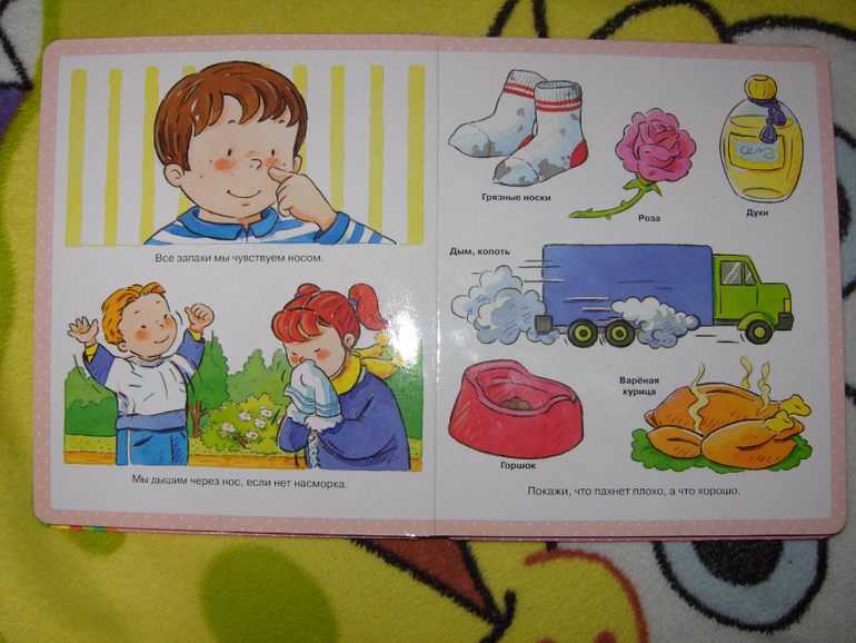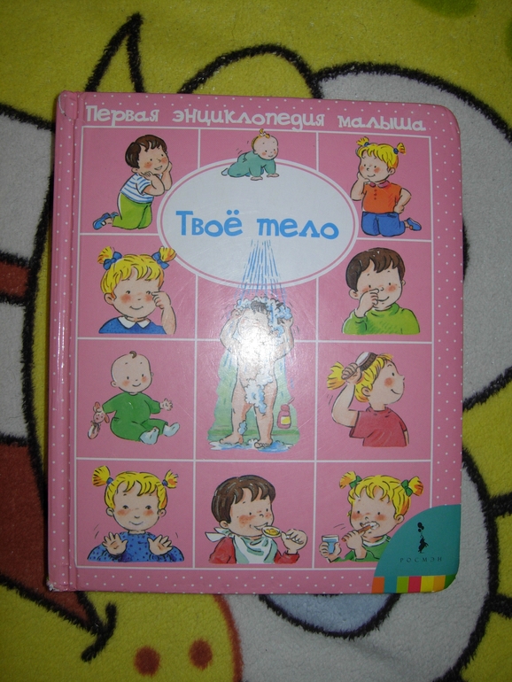 "Твое тело" - книга старшего сына, любимая средним сыном, хит у младшего с недавних пор. Все любят играть в предложенную игру - отгадать предмет с закрытыми глазами, на ощупь.