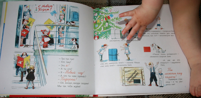 О наличии книги я говорила, но ни разу о ней не писала. Подарена Ваньке на два года. Получив ее, раскрыла и задумалась, показывать сейчас или отложить на постарше. Решила отложить. Но ребенок ее внезапно нашел, принес и заставил читать. . Это было самое-самое любимое издание в период с 2-х до 2.8.