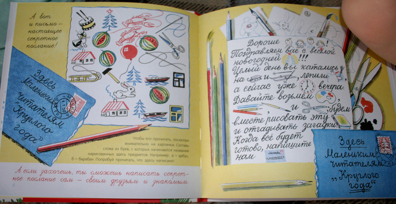 Мы с Ваней все порассматривали, поразгадывали, окошки прорезали ,поигрались. Вот рисовать пока не даю в книге. Слишком мал. Подрастет, научится писать или аккуратно раскрашивать - разрешу.