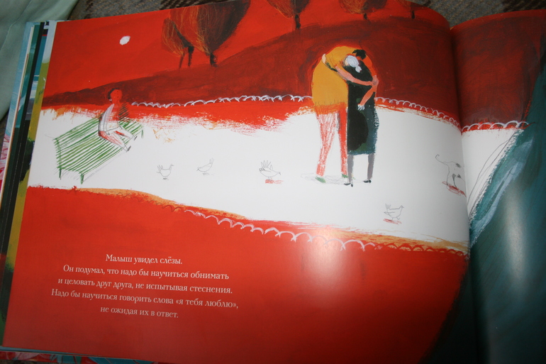 Не знаю, насколько книга детская. Хотя с ребенком мы не раз читали, и ему нравится. Но она точно глубоко взрослая. Вот тот симбиоз текста и картинок проникает в душу, прям в то место, где соединяются внутренние ребенок и взрослый.