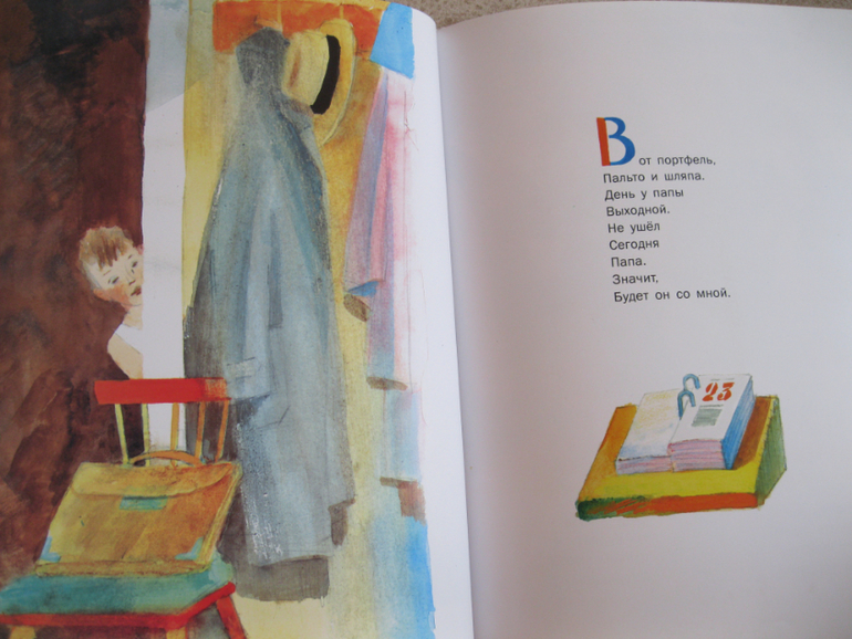 Второй хит - это сказка Цыферова "Жил на свете слоненок". Сразу вообще не могли забрать книгу. Заставил деда перечитывать полюбившиеся страницы десятки раз. Кстати, хотела поинтересоваться, у вас тоже так бывает выберет ребенок страницу или две прозаического текста и заставляет читать только ее до посинения (мамы)? Показывать развороты не буду, мне кажется, они уже всем примелькались.