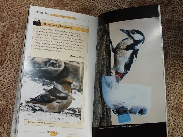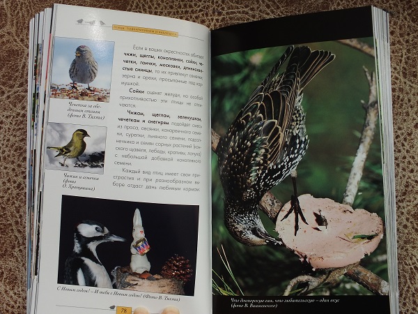 Минус книги (единственный) плохо раскрываются развороты (из-за клееного переплета). Но так как набор покупался из-за кормушки, а книга явилась дополнительным бонусом (при чем красивым, интересным и содержательным), из-за этой мелочи даже оценку товара снижать не хочется.