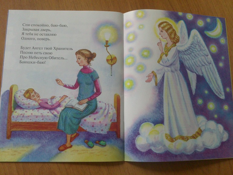 Мой сынуля,благодаря бабушке,любит слушать молитвенное пение,знает некоторые иконы,целует их,умеет креститься)))Ему нравится рассматривать эту книжечку,изучать иллюстрации,ведь там изображено несколько икон,храмы,свечи.А на последней странице Ангел Хранитель,светлый и тихий,как бы говорит,ничего не бойся,я всегда рядом с тобой...