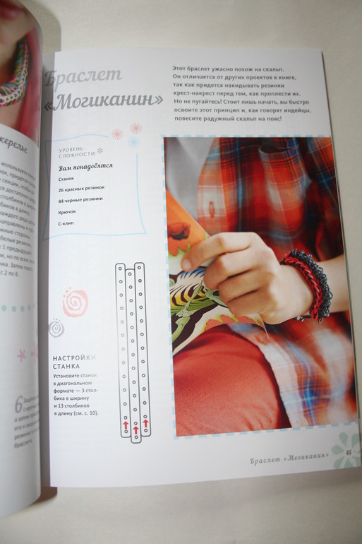 средним школьникамНовинка этого сезона - яркая, сочная книга ''Радужные браслеты из резинок'' - главный помощник по плетению из резиночек. Благодаря ей мы с ребенком сплели браслетик ''Конфетти'', браслет ''Цепочка'', браслет ''Калейдоскоп'' (представлен на обложке) и крутую сумочку для хранения мелочей. Книга вышла совсем недавно вместе с другими новинками серии Хоббитека - ''Радужный зоопарк'', ''Плетение из радужных резинок. Брелоки, фенечки'', ''Плетение из радужных резинок. Браслеты''. Это издание рекомендуется для детей старше 6 лет. Всего в издании 35 интереснейших и понятных любому подростку и школьнику уроков по созданию украшений. Вы сможете создать не только браслеты и ожерелья, но и красивейшие кольца, заколочки и даже ремешок для часов. В книге рассказывается, как правильно пользоваться станком, какие резинки и крючки лучше использовать, как самостоятельно изготовить станок, как снимать изделия и многое другое. Конечно, можно создавать украшения из резиночек, используя видео - уроки, но я считаю, что для этих целей лучше всего подходит книга, она всегда под рукой и ее можно взять с собой куда угодно.