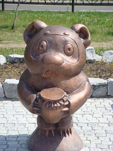 А в 2005 году скульптурная композиция работы Олега Ершова «Винни-Пух и все-все-все» появилась на Красноармейской улице в подмосковном городе Раменское (Московская область, Раменское, ул. Красноармейская, д.5). У нас в России Винни Пух предстал в облике, знакомом всем по мультфильмам Федора Хитрука: