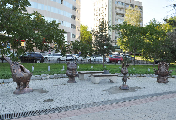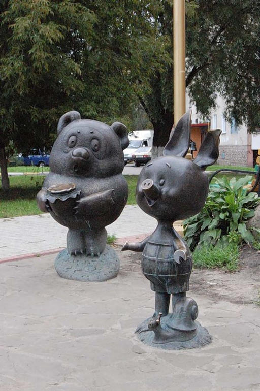 В Хабаровске героев мультфильмов о Винне Пухе установили в мае 2008 года. Эти скульптуры сделаны из бетона со смолой с каркасом из нержавеющей стали и покрыты медью. На вид они кажутся легкими, но только одна «фигурка» Винни-Пуха весит более 250 кг.