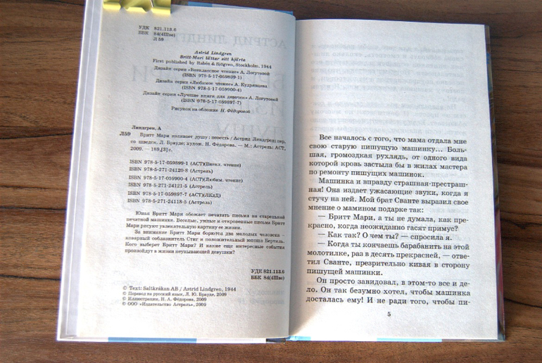"Я люблю их [книги] не только читать, но и трогать, ощущать их, знать, что они мне принадлежат. Мама и папа считают, что есть такие книги, которые должны иметь все дети. Думаю было бы замечательно, если бы все родители придерживались таких взглядов, потому что... ой, сколько радостей выпало на нашу долю благодаря книгам, они у нас никогда не считались каким-то предметом роскоши, кучи книг всегда лежали в наших корзинках с рождественскими подарками, а в наши дни рождения - на столах с подарками. И тот, кто когда-нибудь женится на мне, должен отвечать двум условиям: любить книги и любить детей." - подозреваю именно в этом сообществе как никто могут понять и поддержать слова Линдгрен в лице Бритт Мари
