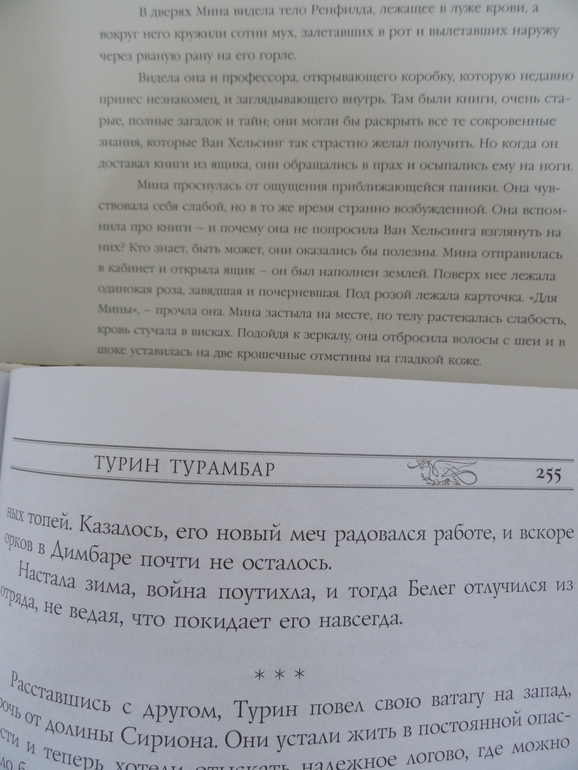 Вова сказал что Сильмариллион чуть ли не интереснее трилогии Властелин, потому что там про всё, от начала до конца. я ещё до него не дошла, так как третью часть не прочитала. Дракула красивый, но шрифт меня убил((. Я когда посмотрела на образовавшуюся кучку книг думала месяц буду писать пост)).Жду твой про Юлино чтение