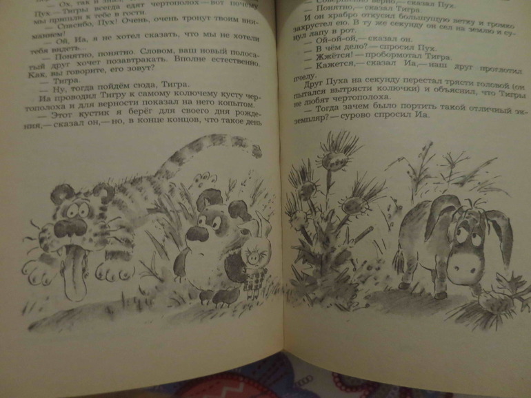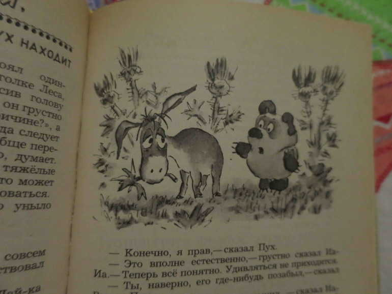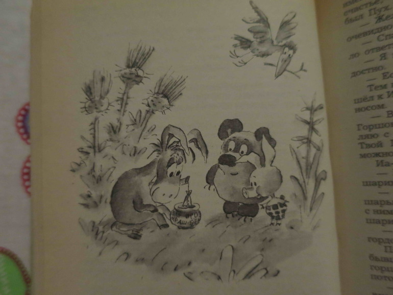 С дочей уже рассмотрели, понравилось, как Пятачок и Винни заглядывают в нору к кролику)